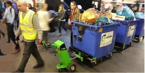 Mit der speziell für die Abfallbranche konzipierten one2move-Maschine wird das Einsammeln von Gewerbeabfällen erleichtert. Es ist nur noch ein Mitarbeiter nötig, der die Maschine mit der zugehörigen Funkfernsteuerung bedient.